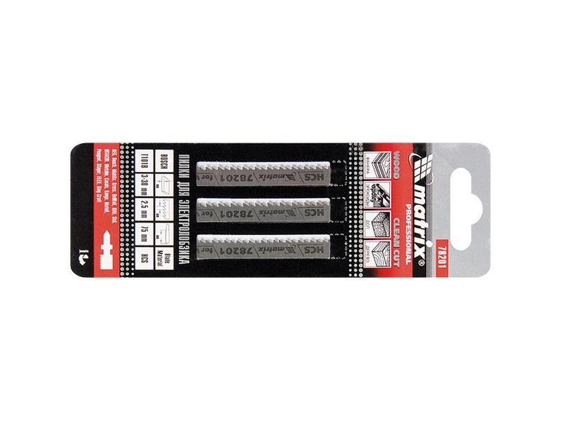 Полотна для электролобзика по дереву, 3 шт. T101B, 75 х 2,5мм, HCS-418