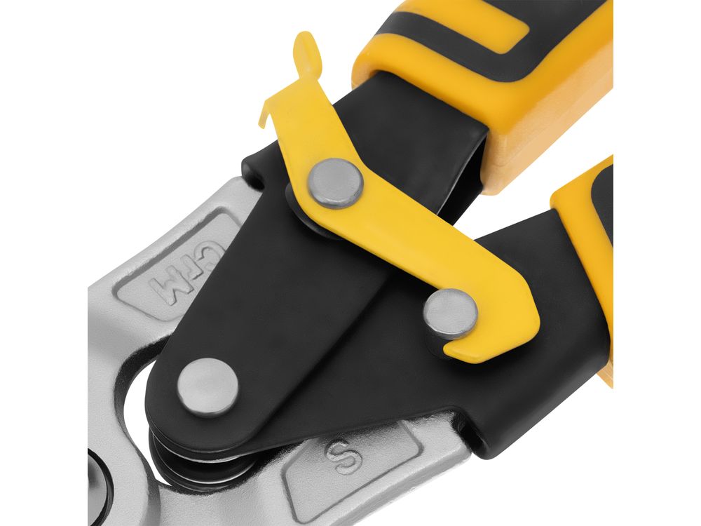Высокое качество исполнения — ножницы изготовлены из прочной хромомолибденовой стали методом горячей штамповки, остро заточенные кованые лезвия с насечками не соскальзывают с заготовок.