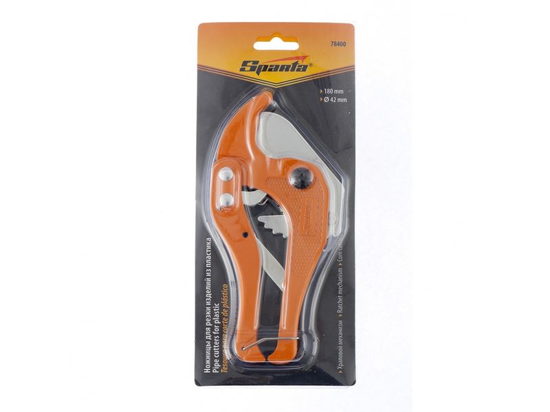 Ножницы Sparta 78400 длиной 180 мм предназначены для резки изделий из пластика диаметром до 42 мм. Храповой механизм увеличивает эффективность реза, экономя усилия мастера. Ножницы используются для ремонта и монтажа трубопроводных систем.