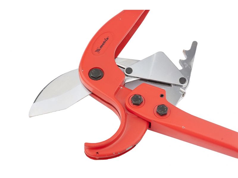 Универсальные ножницы Matrix 78418 с порошковым покрытием рукояток используются для резки изделий из ПВХ диаметром до 63 мм — труб, плинтусов, профилей. Подойдут также для разрезания резиновых шлангов и других заготовок. Ножницы успешно справляются с крупными предметами благодаря удлиненным рукояткам, увеличивающим передаваемое усилие. Инструмент пригодится сантехникам и мастерам-отделочникам.