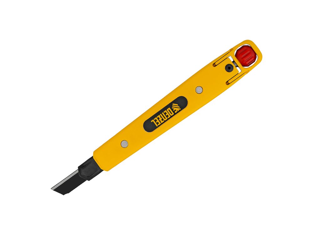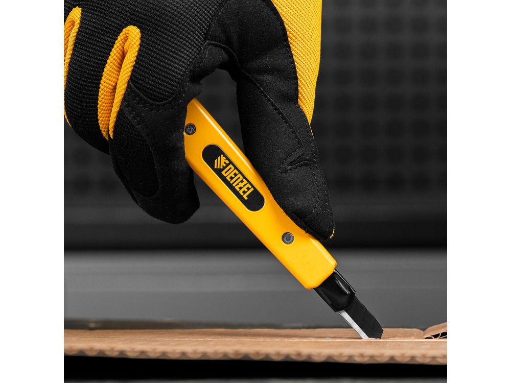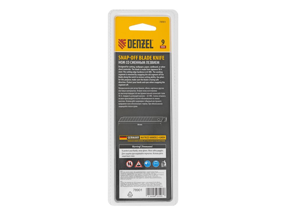 Нож Denzel 78901 выполнен в алюминиевом корпусе, оснащен сменным лезвием шириной 9 мм, изготовленным из стали SK4 по технологии UltraSharp, и торцевым зажимом. Острое выдвижное лезвие легко режет бумагу, обои, картон и другие листовые материалы. Нож будет полезен для проведения профессиональных ремонтных и отделочных работ, пригодится также в домашнем хозяйстве.