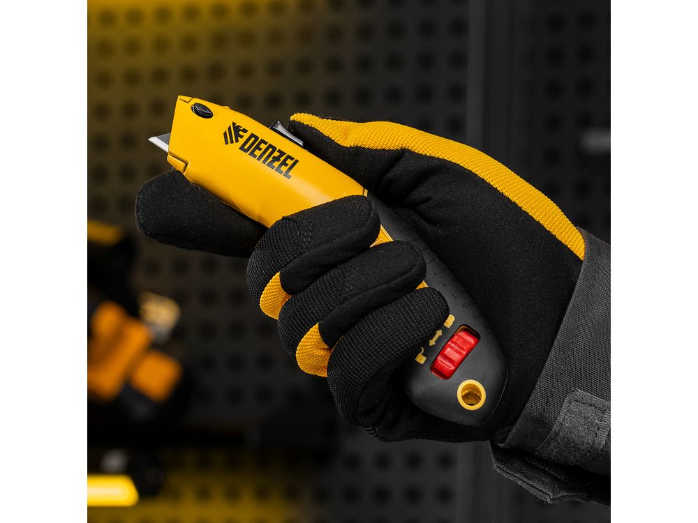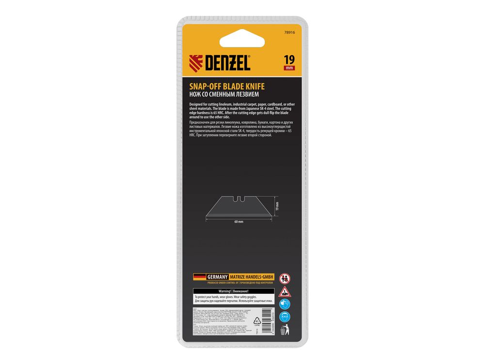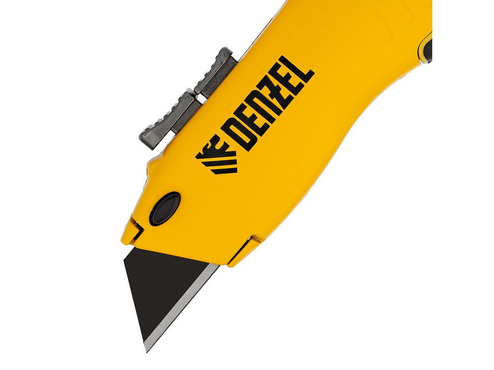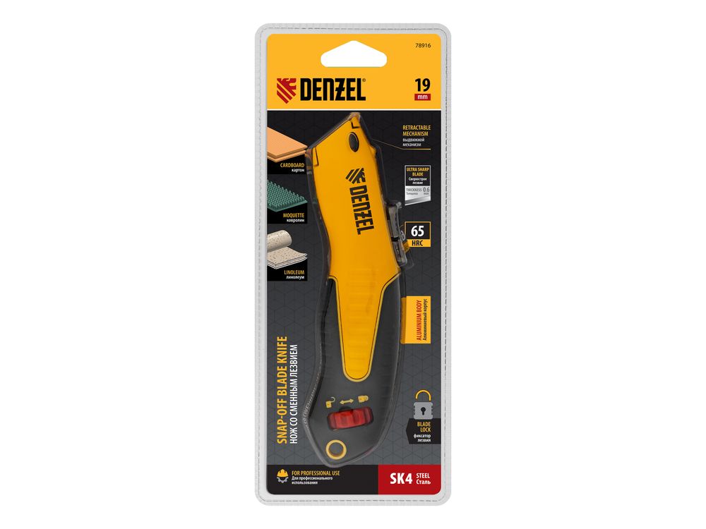 Нож Denzel 78916 выполнен в алюминиевом корпусе, оснащен сменным трапециевидным лезвием шириной 19 мм, изготовленным из стали SK4 по технологии UltraSharp, и торцевым зажимом. Сверхострое выдвижное лезвие легко режет бумагу, картон, кожу и другие нетвердые материалы. Нож станет незаменимым помощником на строительной площадке, на кухне, в офисе.