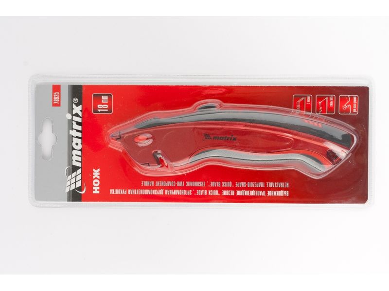 Нож Matrix «QUICK BLADE» 78925 с выдвижным трапециевидным лезвием, эргономичной двухкомпонентной рукояткой и 3 лезвиями в комплекте имеет широкий спектр применения: с его помощью можно резать бумагу, гипсокартон, обои и т.д. Он пригодится на строительной площадке или в мастерской. Нож с выдвижным лезвием обладает практичной и безопасной конструкцией, что делает его универсальным.
