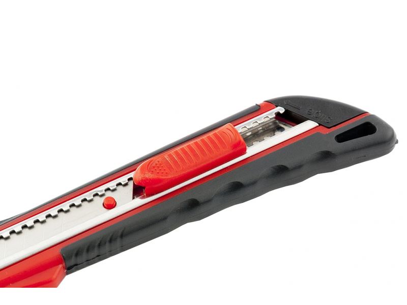 Нож, 9 мм выдвижное лезвие, метал. направляющая, эргоном. двухкомпонентная рукоятка