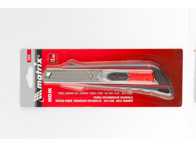 Нож Matrix «QUICK BLADE» 78936 с выдвижным лезвием, эргономичной двухкомпонентной рукояткой, металлическими направляющими и двойной фиксацией, — безопасный и практичный инструмент для решения бытовых и строительных задач. С его помощью можно разрезать бумагу, гипсокартон, обои, натуральную и искусственную кожу, линолеум и др. материалы. Нож станет незаменимым помощником дома, в мастерской, гараже, пригодится для рукоделия.