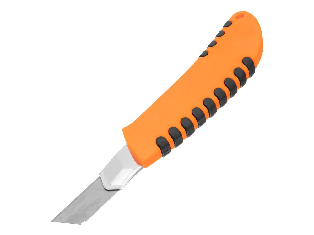 Купить Нож, 18 мм, выдвижное лезвие, металлическая направляющая, пластиковый двухкомпонентный корпус