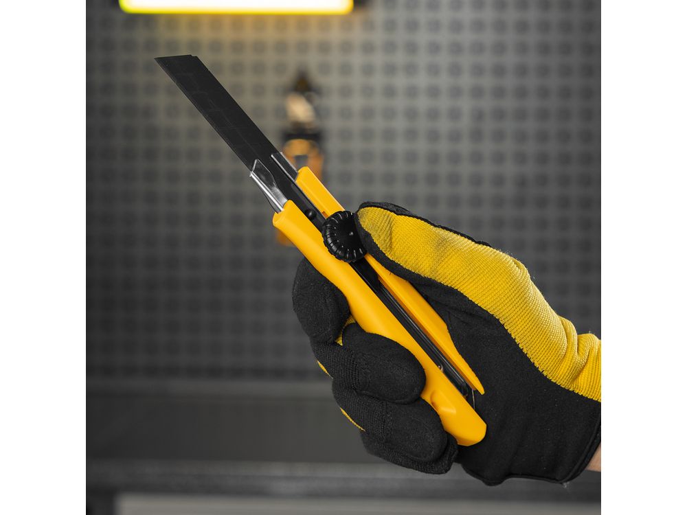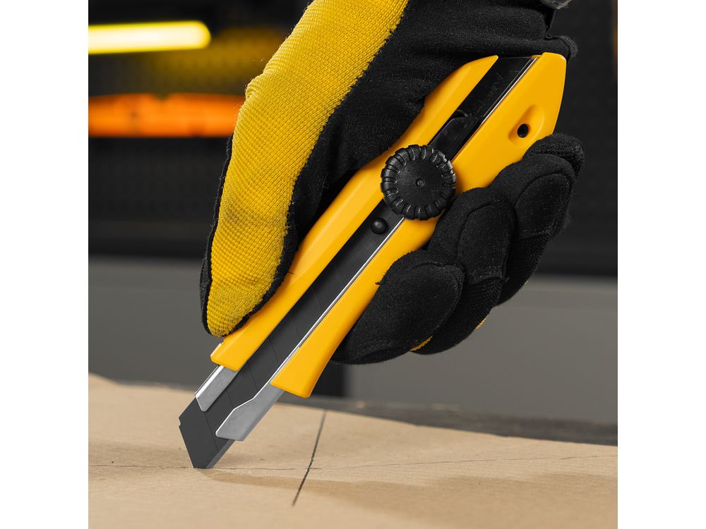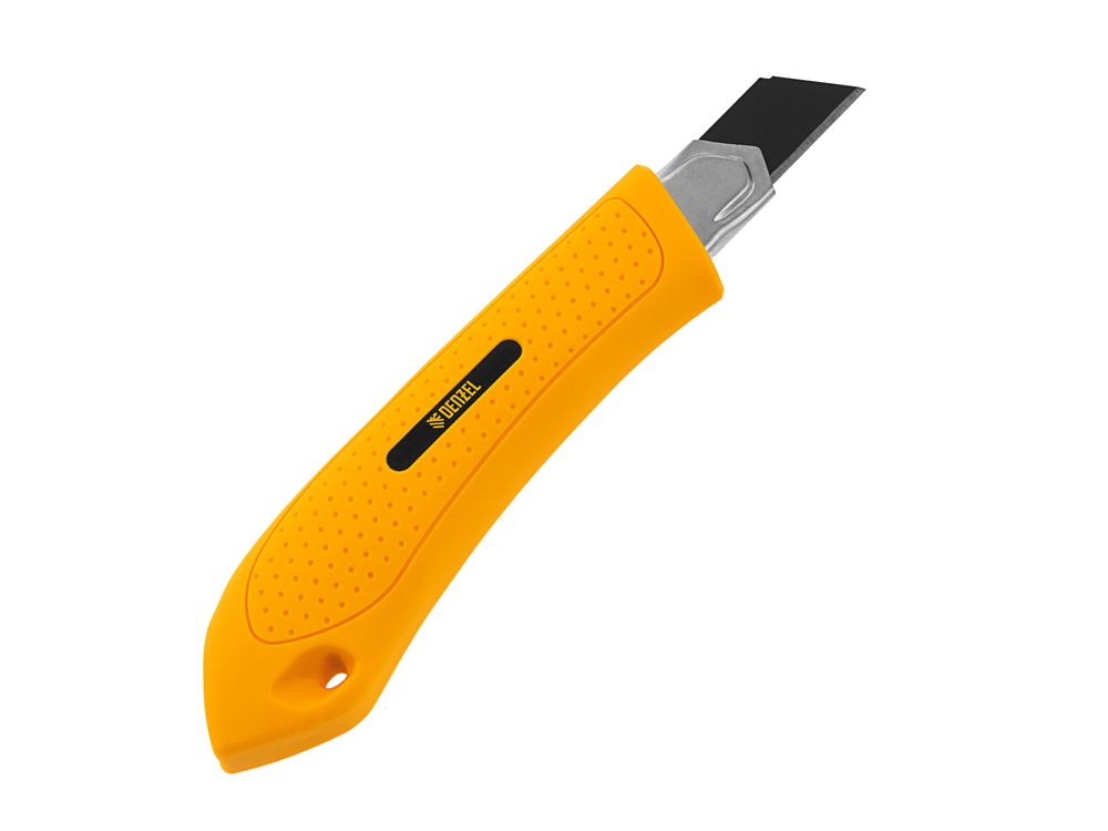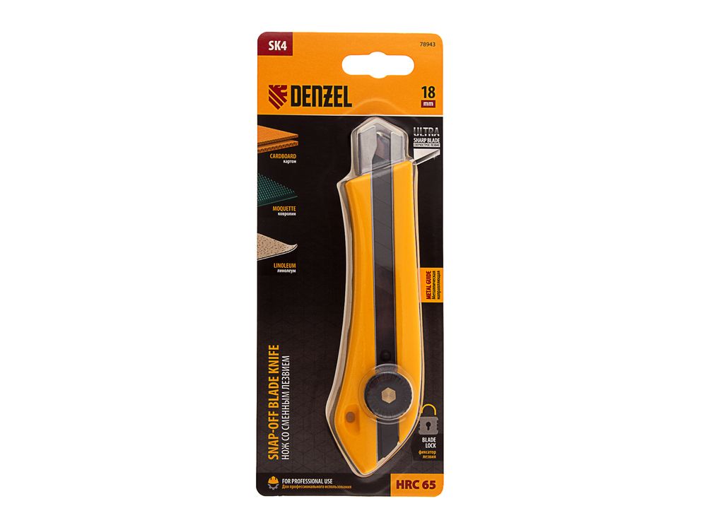 Нож Denzel 78943 со сменным лезвием шириной 18 мм, изготовленным из стали SK4, оснащен винтовым фиксатором и металлической направляющей. Сверхострое выдвижное лезвие легко режет линолеум, ковролин, бумагу, обои, картон и другие листовые материалы. Нож рекомендован для профессионального применения, пригодится также в домашнем хозяйстве.