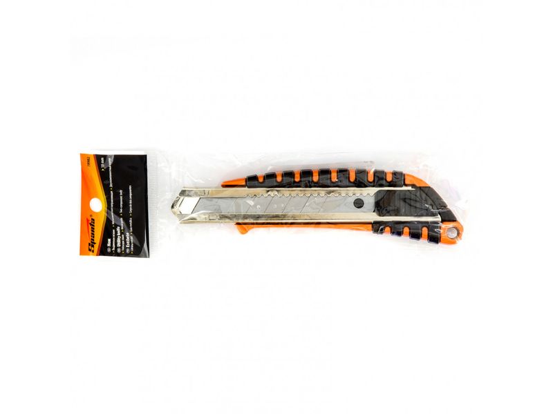 Нож, 18 мм выдвижное лезвие металлическая направляющая, метал. двухкомпонентный корпус