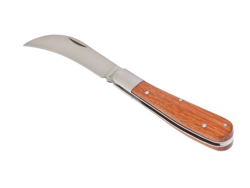 Нож садовый складной, изогнутое лезвие, 170 мм, деревянная рукоятка