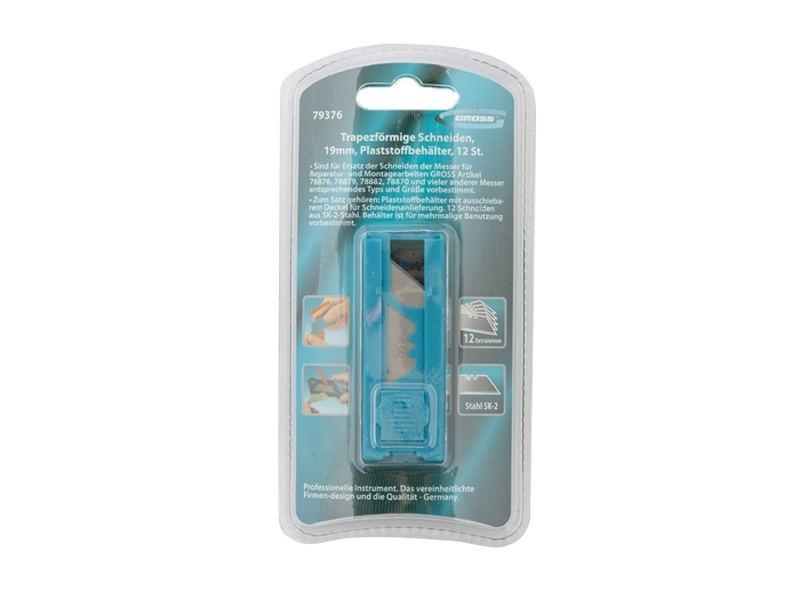 Лезвия, 19 мм, трапециевидные, пластиковый пенал, 12 шт.