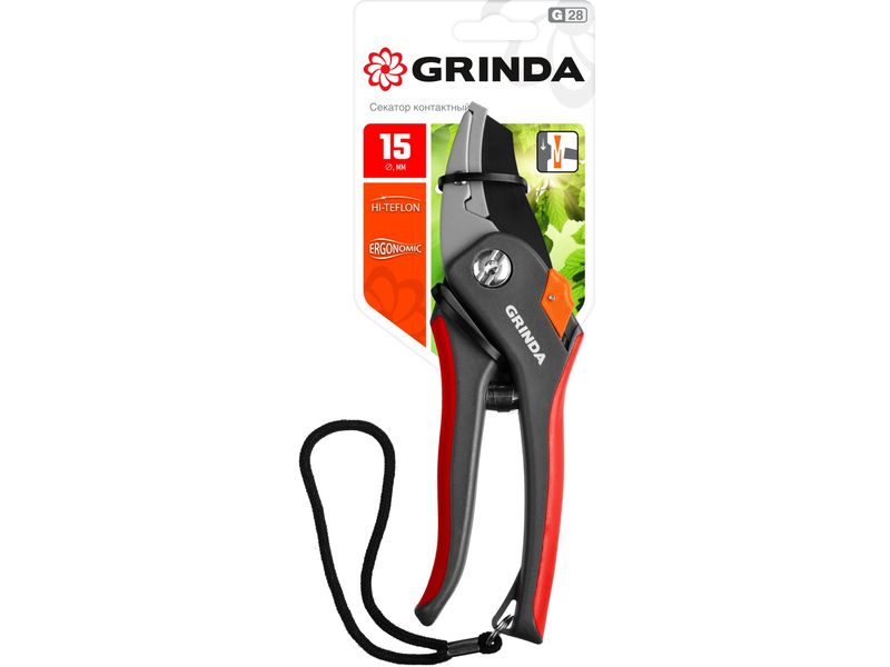 G-28 Секатор с двухкомпонентными рукоятками, контактный, 205 мм, GRINDA