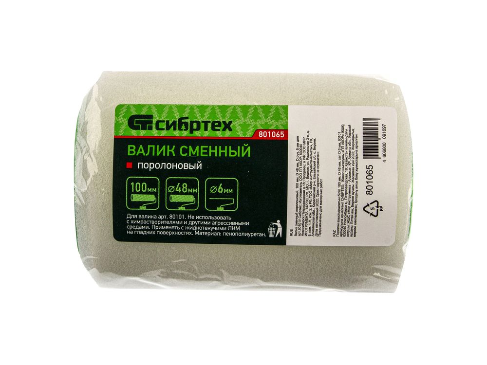 Валик сменный поролоновый, 100 мм, D 48 мм, D руч. 6 мм для арт. 80101-265