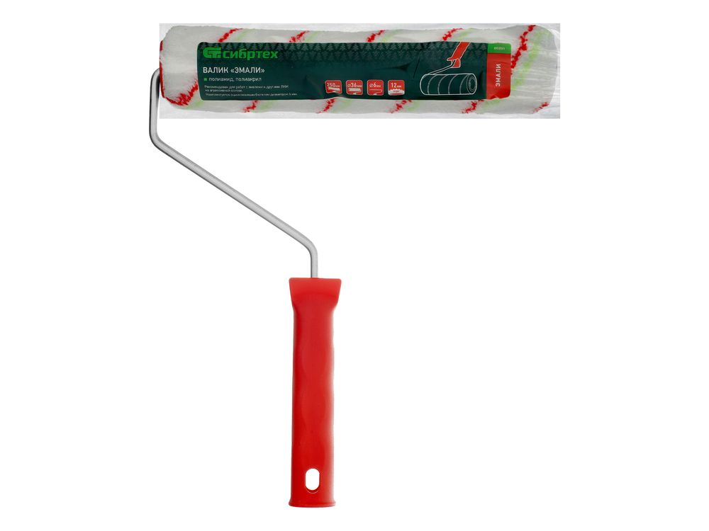Валик Сибртех «Эмали» 80201 из полиамида и полиакрила, с ручкой 6 мм, роликом 250 х 36 мм, длиной ворса 12 мм, предназначен для проведения малярных работ. Валик повышенной износостойкости можно использовать для нанесения любых ЛКМ, в том числе содержащих агрессивные вещества, на поверхности с различной фактурой. Рекомендован для работ с эмалями.