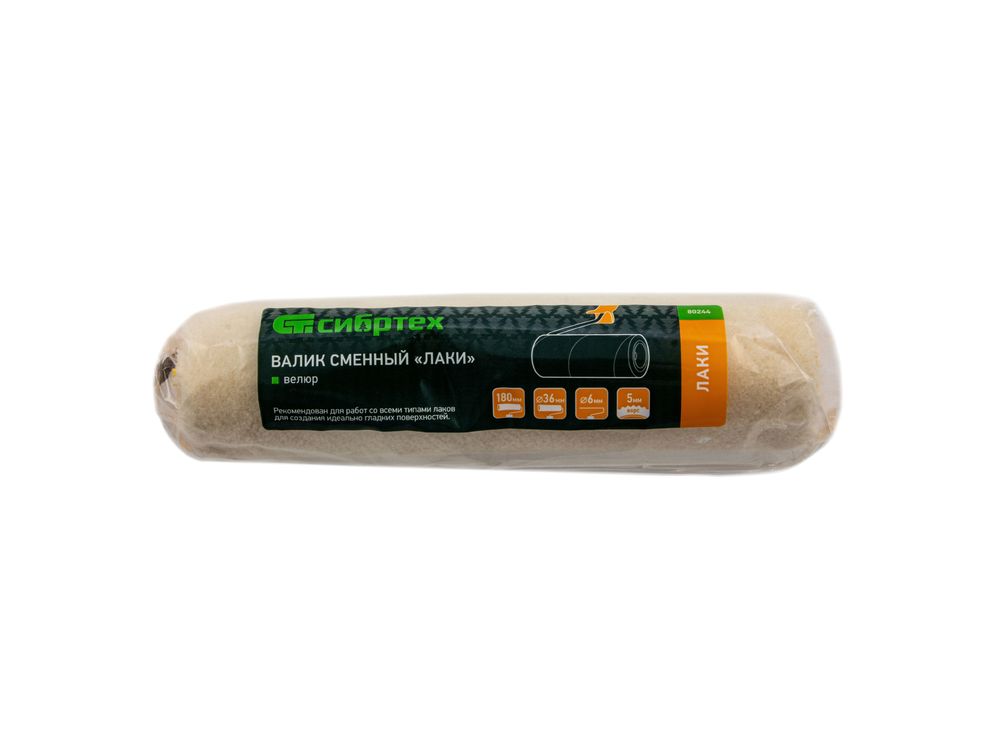 Сменный валик Сибртех «Лаки» 80244 с ворсом 5 мм из велюра, роликом 180 х 36 мм, под ручку 6 мм, подходит к модели Сибртех 80242. За счет шубки из велюра с коротким ворсом он равномерно наносит материал тонким слоем, поэтому оптимален для малярных работ с лаками. Валик шириной 180 мм удобен для окрашивания больших площадей.