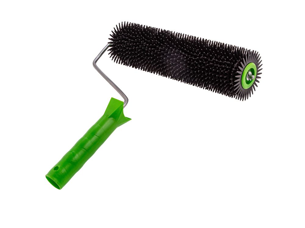 Игольчатый валик Сибртех 81110 шириной 240 мм, с рукояткой и острыми иглами длиной 14 мм, применяется для монтажа наливных полов, а также выполнения работ с другими вязкими материалами. Эффективно удаляет воздушные пузыри и полости между рабочими слоями. Подходит для покрытий небольшой толщины.