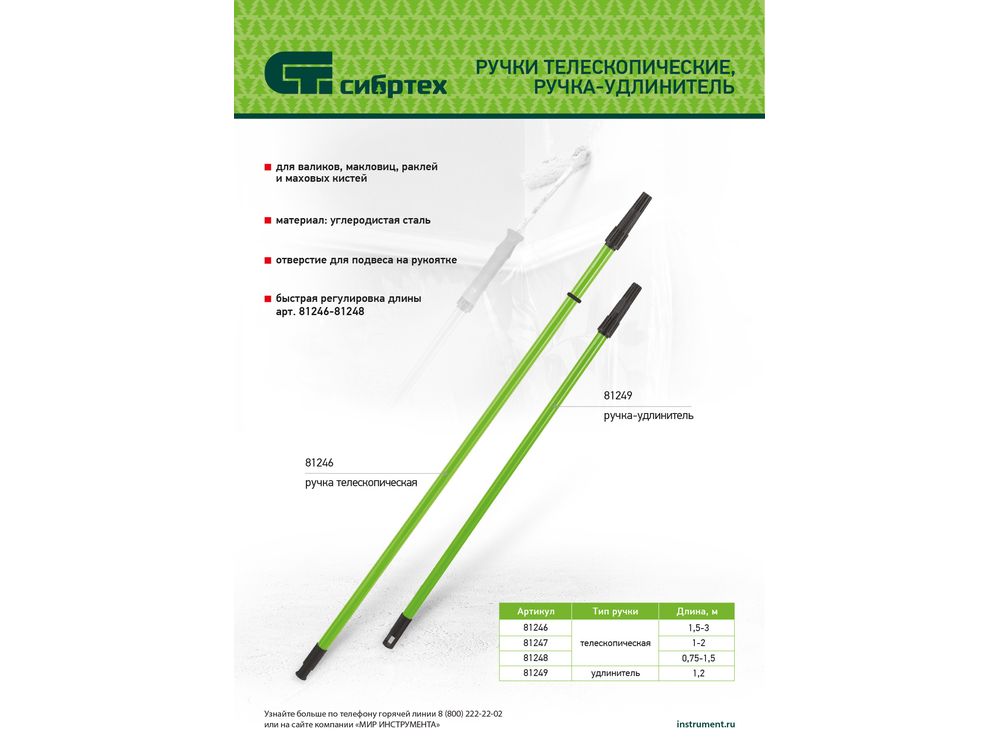 Металлическая ручка-удлинитель Сибртех 81249 длиной 1,2 м используется для проведения малярно-отделочных работ: окрашивания высоких стен и потолков, прокатки обоев. Совместима не только с валиками, но и с маховыми кистями, раклями и макловицами, что расширяет возможности ее применения.