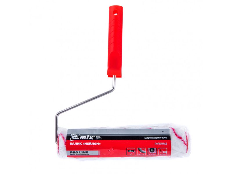 Полиамидный валик MTX «НЕЙЛОН» PRO LINE 81338 шириной 250 мм, с диаметром ролика 40 мм, диаметром бюгеля 6 мм и длиной ворса 9 мм, предназначен для интерьерных работ. За счет длины ворса 9 мм валик качественно окрашивает гладкие поверхности. Ширина 250 мм позволяет обрабатывать участки большого размера.