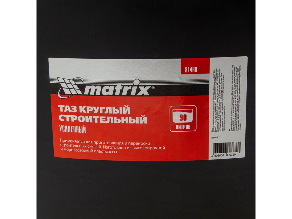 Таз круглый строительный усиленный Matrix 81469 объемом 90 л предназначен для замешивания строительных растворов любого типа при проведении ремонтно-отделочных работ. Благодаря диаметру 662 мм для приготовления смеси удобно использовать различный отделочный инструмент (шпатели, кисти). Пригодится такой таз и в быту: он удобен для хранения сыпучих материалов, сбора и утилизации мусора, проведения влажной уборки.