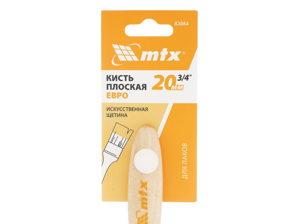 Кисть плоская MTX «Евро» 83084 шириной 3/4, с искусственной щетиной и деревянной ручкой, пригодится при проведении малярных работ. Предназначена для работы с любыми типами лаков. Мягкая и упругая щетина оптимальна для нанесения покрытий на гладкие и слегка шероховатые поверхности.