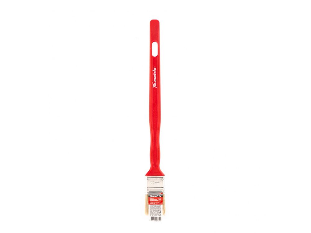 Удлиненная флейцевая кисть Matrix 83401 шириной 35 мм и толщиной 10 мм, с натуральной щетиной и пластиковой ручкой используется для отделочных работ с применением любых лакокрасочных материалов. Удобна для окрашивания небольших или узких участков. Удлиненная ручка упрощает обработку труднодоступных мест и снижает усталость при длительной работе.