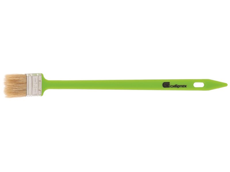 Радиаторная кисть Сибртех 83856 шириной 36 мм, с натуральной щетиной и пластиковой ручкой, позволяет окрашивать радиаторы, трубы, проволочные конструкции. Особенно удобна для покраски углов и стыков пола или потолка со стенами. Удлиненная ручка облегчает проведение малярных работ. Натуральная щетина с добавлением искусственного ворса устойчива к деформации и сохраняет упругость и краскообменные качества при использовании масляных красок и эмалей.