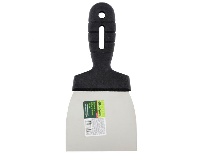 Шпательная лопатка Сибртех 85435 с полотном шириной 100 мм из нержавеющей стали, с пластмассовой ручкой, используется для нанесения, выравнивания и разглаживания строительных растворов и смесей. Пригодится для проведения ремонтно-отделочных работ, подходит для начинающих и профессиональных мастеров.
