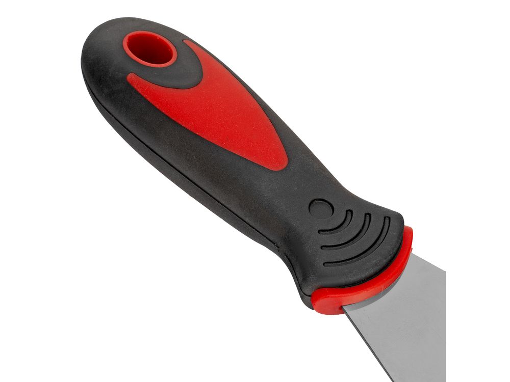 Многофункциональный шпатель-скребок Matrix 85558 9 в 1 с двухкомпонентной рукояткой имеет лезвие сложной конфигурации из нержавеющей стали. Используется для очищения поверхностей от шпатлевки, остатков цемента, зачистки труб и т. д. На жестком полированном полотне с лезвием шириной 75 мм предусмотрены выемки различной формы, благодаря которым инструмент можно использовать в качестве ключа на 11 и 15 мм, а также применять для очистки валиков, извлечения гвоздей, поддевания предметов, открывания банок с краской, равномерного нанесения смесей и выполнения прочих работ.