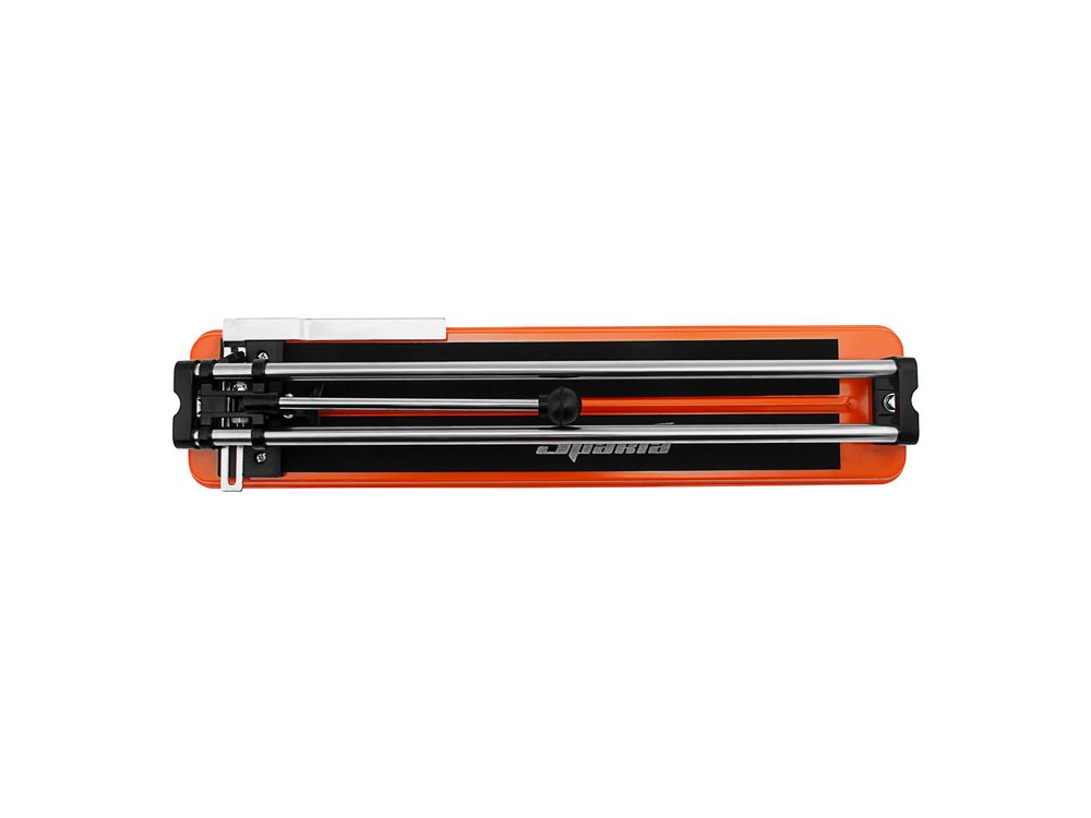 Точность выполняемых работ — металлическая линейка-угольник облегчает позиционирование плитки на станине, твердосплавный режущий ролик обеспечивает аккуратный рез.