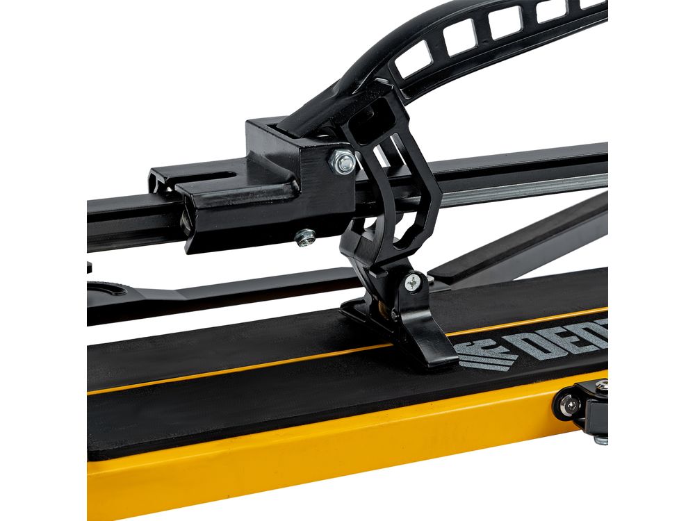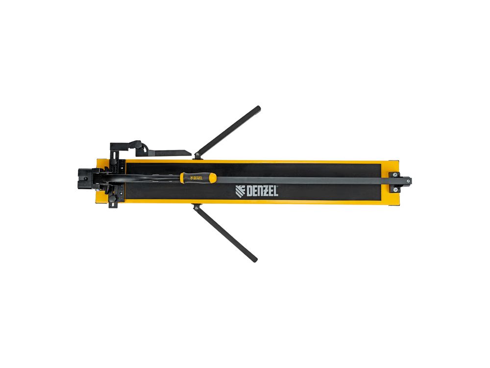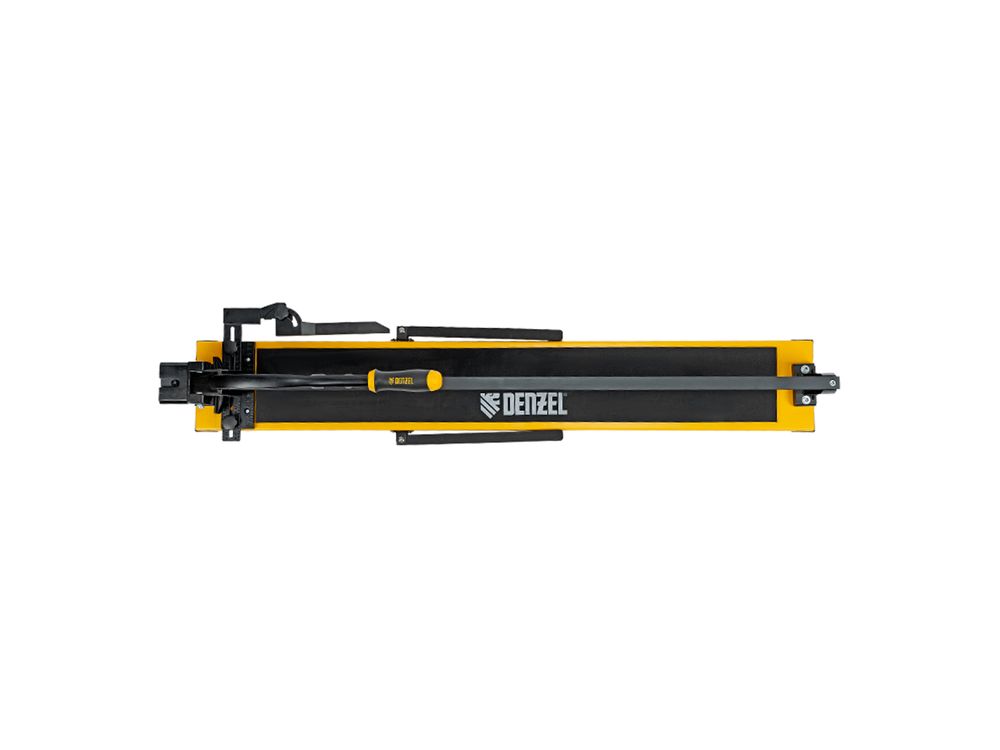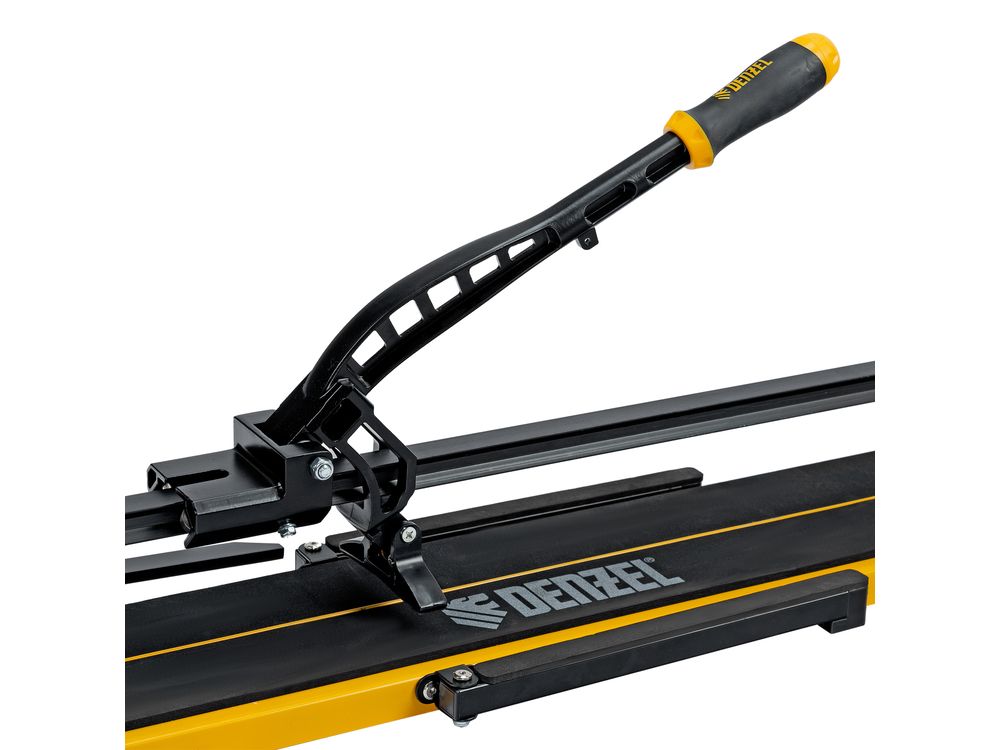 Ручной плиткорез Denzel 877018 с рельсовой направляющей и стальной станиной, с кареткой на подшипниках и усиленной рукояткой-пеналом, предназначен для прямой и диагональной резки керамической плитки и керамогранита длиной до 1000 мм и толщиной до 16 мм. Раздвижные упоры упрощают работу с плиткой большого размера. Инструмент используется для проведения отделочных работ.