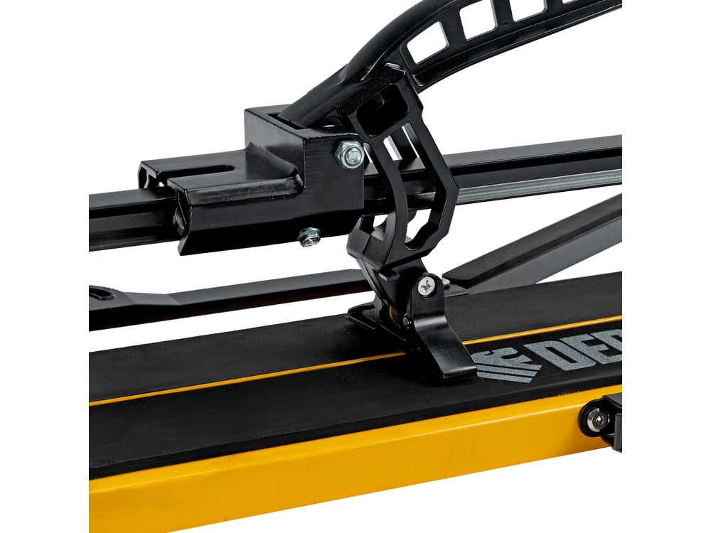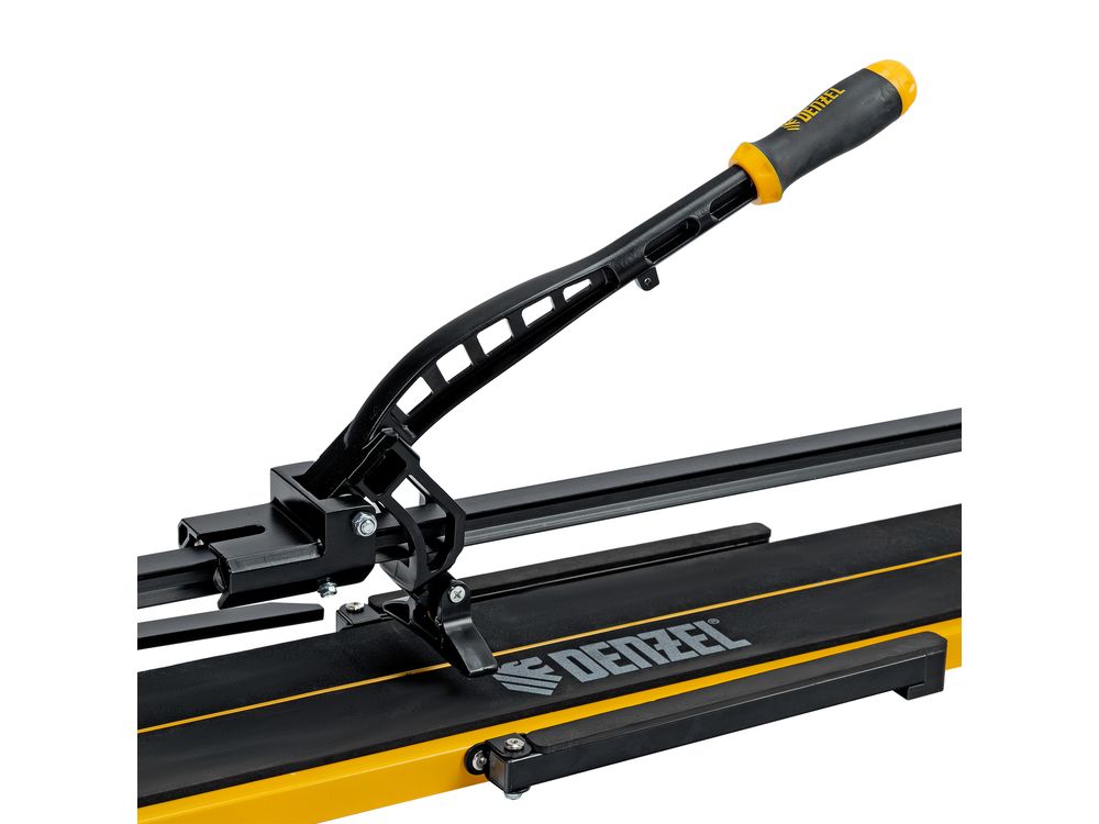 Ручной плиткорез Denzel 877020 с рельсовой направляющей и стальной станиной, с кареткой на подшипниках и усиленной рукояткой-пеналом, предназначен для прямой и диагональной резки керамической плитки и керамогранита длиной до 1200 мм и толщиной до 16 мм. Раздвижные упоры упрощают работу с плиткой большого размера. Инструмент используется для проведения отделочных работ.