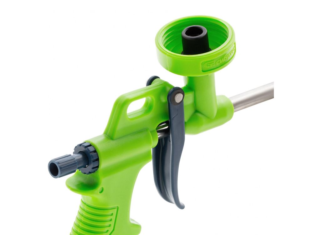 Предназначен для работ с монтажной пеной в баллонах, имеющих резьбовой соединитель. Используется для герметизации швов, трещин, стыков, проемов и пр.