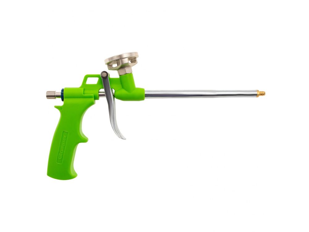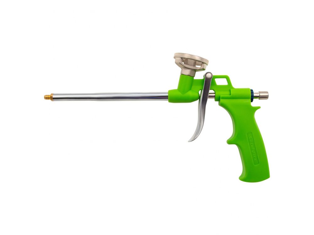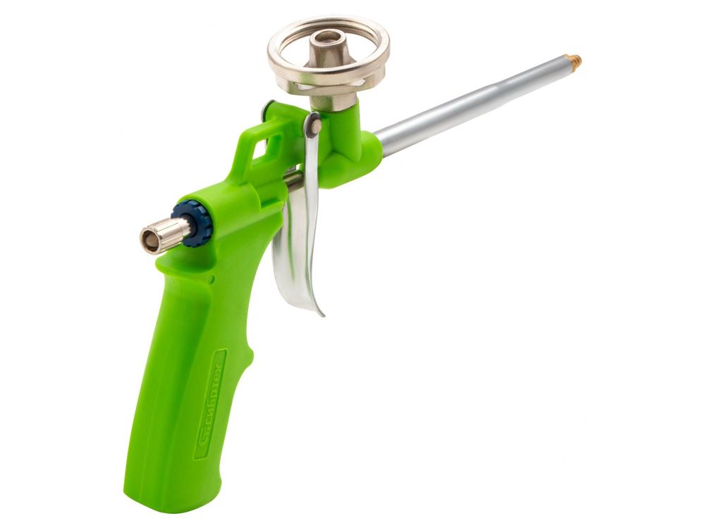 Предназначен для работ с монтажной пеной в баллонах, имеющих резьбовой соединитель. Используется для герметизации швов, трещин, стыков, проемов. Эргономичный облегченный корпус из ударопрочного пластика обеспечивает повышенную надежность и удобство в работе. Трещоточный регулятор подачи пены способствует ее точному дозированию и равномерному выходу. Ствол выполнен из нержавеющей стали, устойчивой к коррозии и механическим повреждениям Полировка внутренней поверхности ствола препятствует налипанию пены.