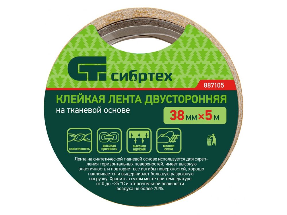 Купить Лента клейкая двусторонняя, 38мм х 5м, на тканевой основе