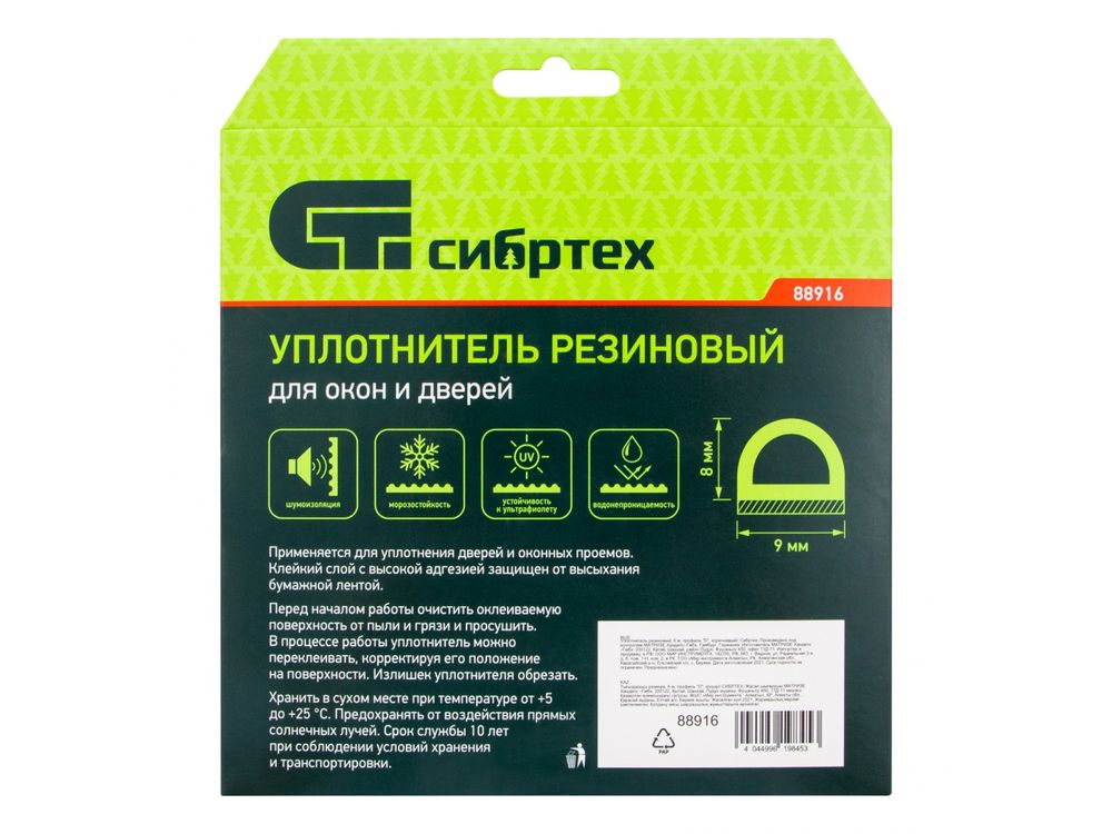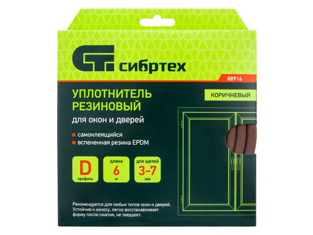 Коричневый резиновый уплотнитель Сибртех 88916 длиной 6 м, с профилем «D», предназначен для герметизации и уплотнения оконных и дверных блоков с целью предотвращения сквозняков и вибраций, защиты от влаги и пыли, создания эффективной тепло- и звукоизоляции. Клеевой слой обеспечивает высокую адгезию и надежную фиксацию. Использование уплотнителя позволяет значительно снизить энергетические и экономические затраты. Лента с D-профилем 9 х 8 мм подойдет для щелей размером 3-7 мм.