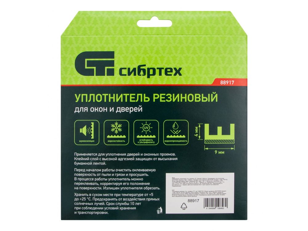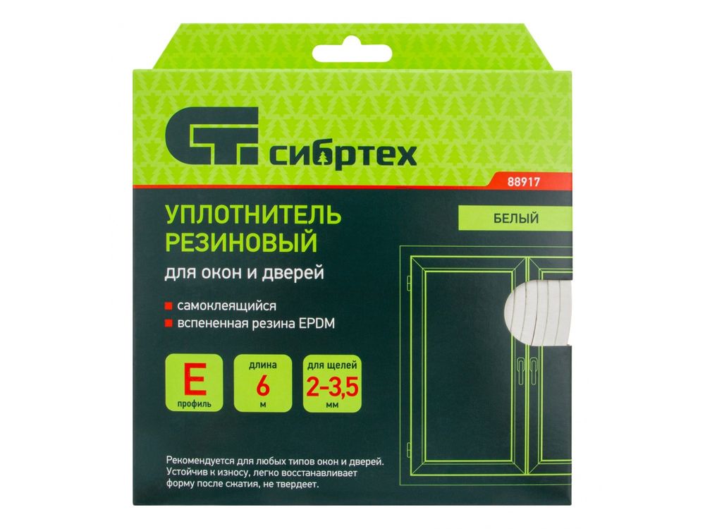 Белый резиновый уплотнитель Сибртех 88917 длиной 6 м, с профилем «E», предназначен для герметизации и уплотнения оконных и дверных блоков с целью предотвращения сквозняков и вибраций, защиты от влаги и пыли, создания эффективной тепло- и звукоизоляции. Клеевой слой обеспечивает высокую адгезию и надежную фиксацию. Использование уплотнителя позволяет значительно снизить энергетические и экономические затраты. Лента с E-профилем 9 х 4 мм подойдет для щелей размером 2-3,5 мм.
