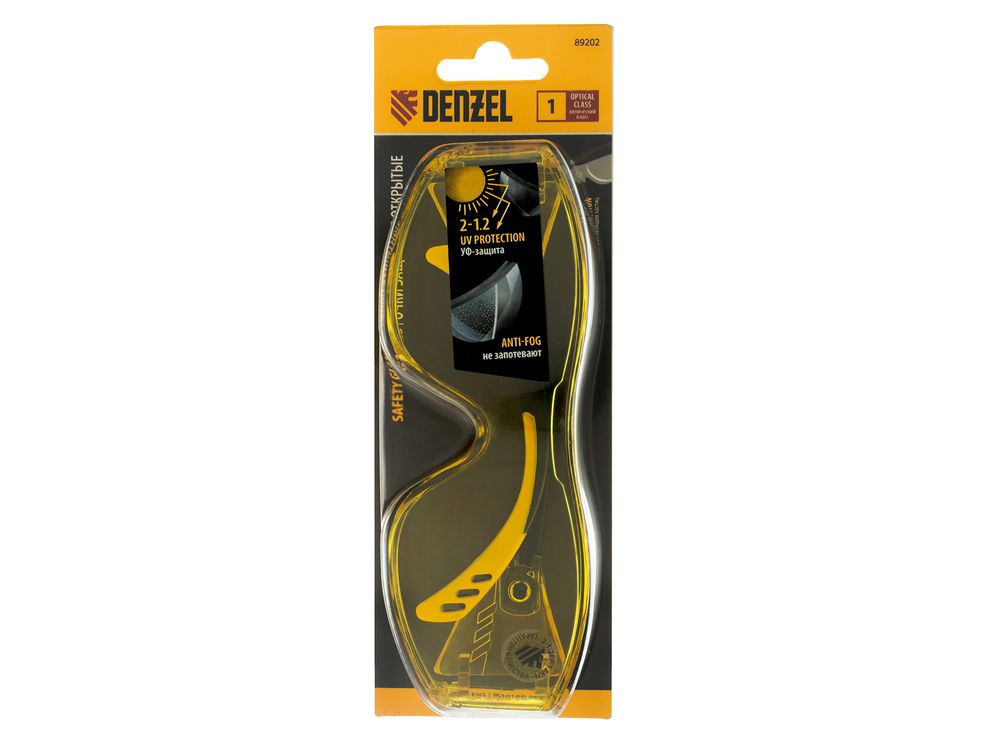 Очки защитные открытые Denzel 89202 с увеличенными поликарбонатными желтыми линзами предназначены для защиты глаз от механических повреждений и УФ-излучения. Очкам присвоен класс механической прочности F, они обеспечивают защиту от высокоскоростных частиц с низкоэнергетическим ударом (скорость частиц до 45 м/с). Легкие универсальные очки используются во время работы с электро- и бензоинструментом, на производстве и в быту.