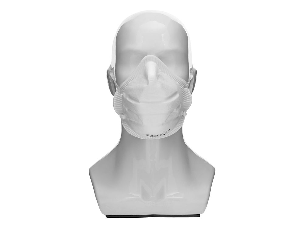 Полумаска не спадает во время работы, т.к. имеет чашеобразную форму и эластичные резинки оголовья для надежной посадке на любом лице.