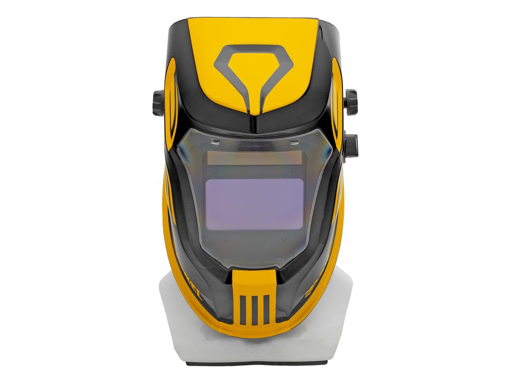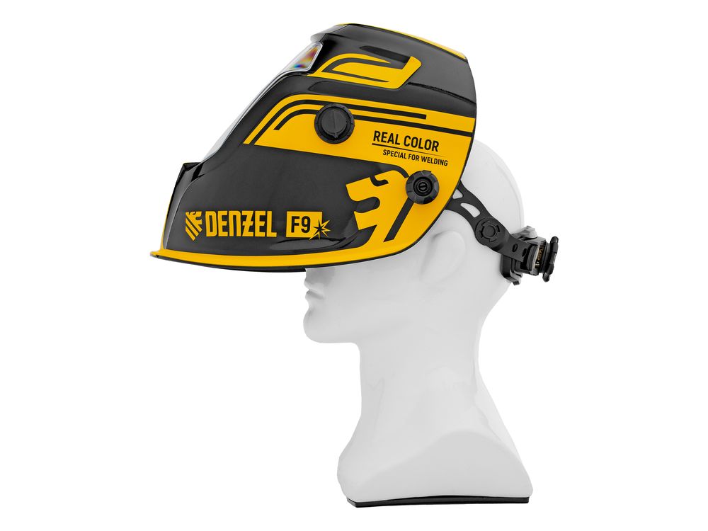 Защитный лицевой щиток (маска сварщика) Denzel F9 89718 со смотровым окном размером 100 x 60 мм, системой Real Color и функцией затемнения в диапазоне DIN 4-8/9-14, предназначен для защиты глаз, лица пользователя, области шеи и частично области плеч от искр, брызг расплавленного металла, а также инфракрасного и ультрафиолетового излучения. Используется во время проведения сварочных работ в различных режимах (MMA, MIG/MAG, TIG). 4 оптических датчика обеспечивают эффективную работу светофильтра. Благодаря системе «хамелеон» экран автоматически темнеет при поджиге дуги (время реагирования 1/25000 с) и светлеет после окончания сварки.