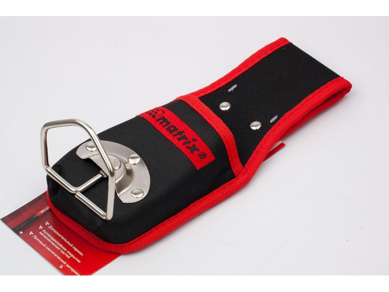 Шарнирный поясной держатель молотка Matrix 90244 будет полезен частным мастерам и профессионалам. Его можно закрепить на поясе и носить с собой, а руки при этом остаются свободными, что особенно актуально при выполнении работ на высоте.