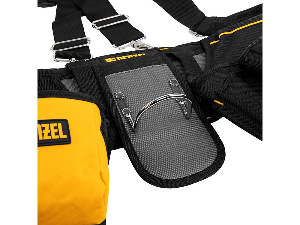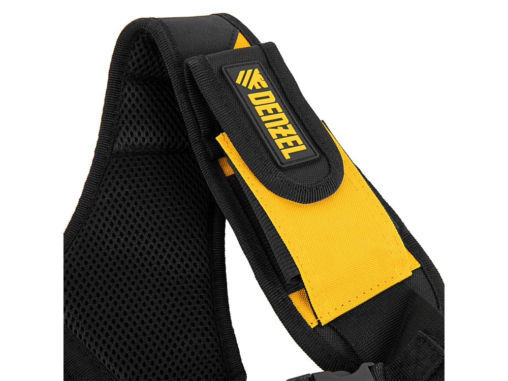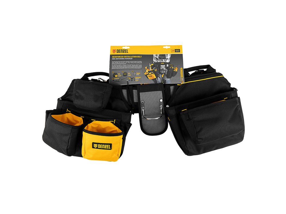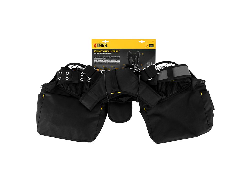 Усиленный пояс монтажника Denzel 90290 с лямками, поясными сумками и держателем для молотка оптимален для работы на высоте или на выезде. Обеспечивает быстрый доступ к нужным инструментам, оставляя руки свободными. Незаменим для выполнения монтажных, слесарных, электромонтажных и других работ.