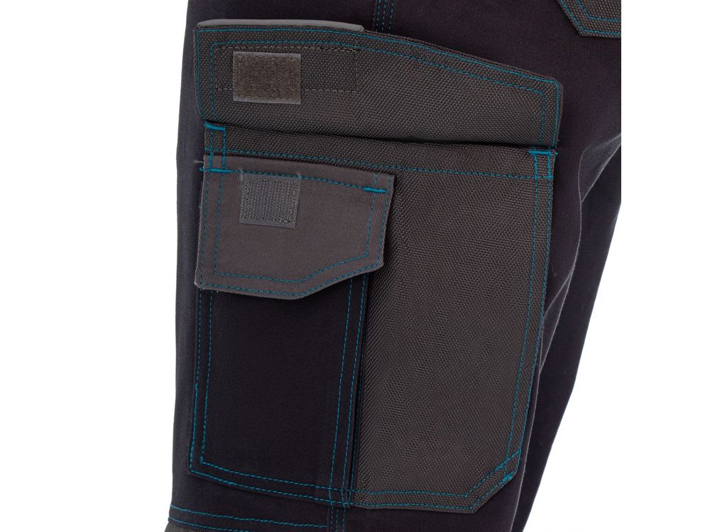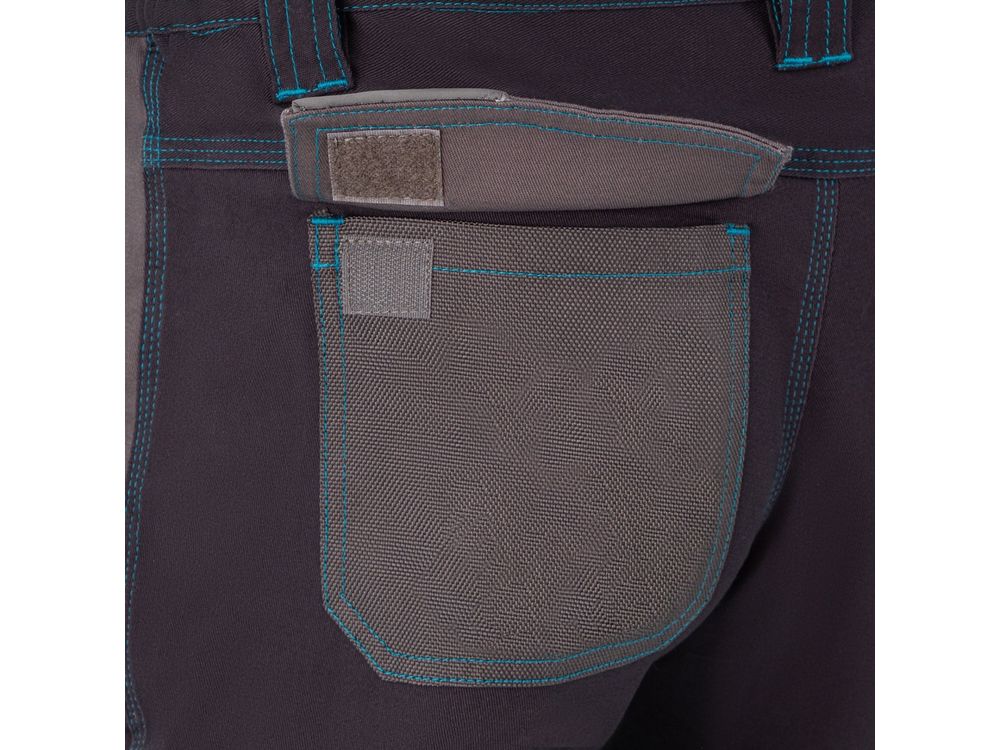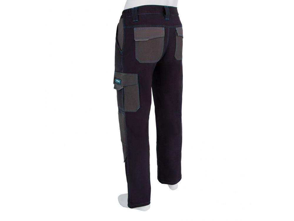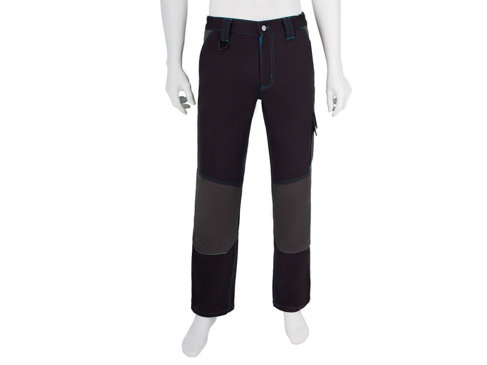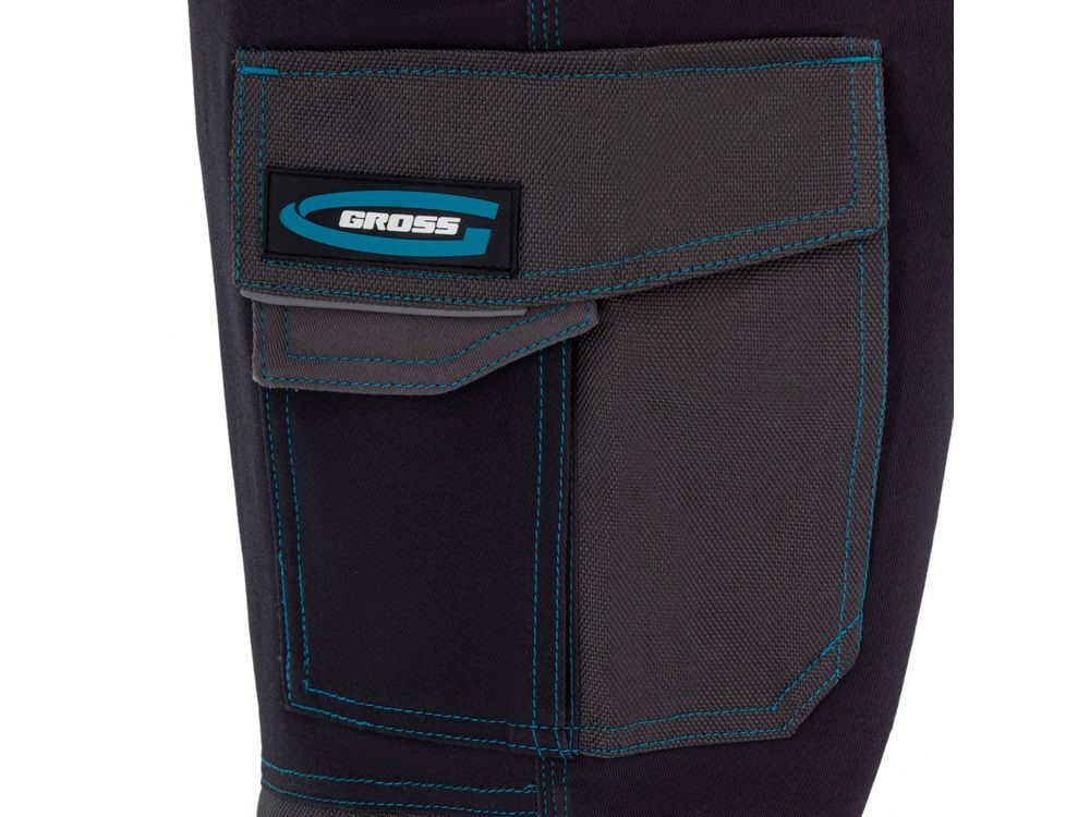 Рабочие брюки Gross 90371 размера XXXL из хлопка (97%) и спандекса (3%) можно носить на профессиональном производстве или в любительской мастерской. Они надежно защищают пользователя от грязи, пыли и незначительных повреждений, а встроенные светоотражатели делают работу в условиях недостаточной видимости более безопасной. Для удобства брюки оснащены 11 специальными карманами. Преимущества Высокое качество — хлопок (97%) и спандекс (3%) в составе ткани обеспечивают воздухообмен, эластичность и износостойкость брюк. Удобное размещение нужных вещей — для мелочей и мобильного телефона предусмотрены карманы на липучках. Вместительные карманы — помимо мелких деталей в брюках можно разместить нужные для работы инструменты: пассатижи, отвертки и другие. Отсеки для защитных вкладышей — работать с упором на колени комфортно и безопасно (вкладыши не входят в комплект). Удобная посадка — благодаря эластичному поясу брюки хорошо садятся, также предусмотрены шлевки для надевания ремня.