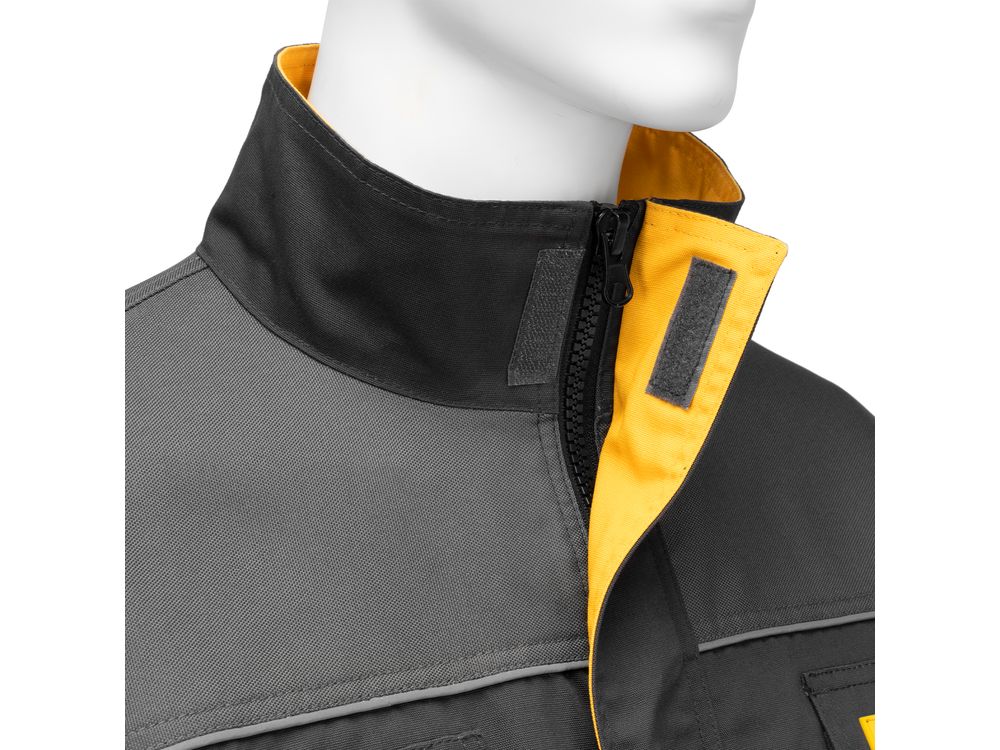 Профессиональная рабочая куртка Denzel 90380 размера XXL защищает пользователя от общих производственных загрязнений, нетоксичной пыли, ветра и незначительных механических воздействий. Рассчитана на рост 188-191 см и предназначена для использования в теплое время года или в отапливаемом помещении. Куртка изготовлена из ткани плотностью 260 г/м2 (65% полиэстер, 35% хлопок). За счет наличия хлопковых волокон в составе ткань хорошо пропускает воздух и приятна на теле, полиэстер обеспечивает устойчивость к истиранию. Одежда выполнена в практичном темно-сером цвете.