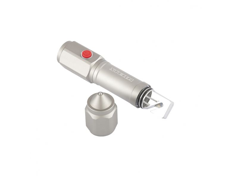 Дополнительные возможности — на тыльной стороне фонаря имеется ударник («стеклобой») для разбивания автомобильного стекла в случае аварии, под съемным ударником расположен нож для разрезания заклинивших ремней безопасности.