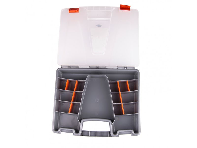 Органайзер из пластика Stels 90707 размером 310 х 250 х 50 мм позволяет обустроить практичное место хранения мелких деталей. Также его удобно брать с собой на выездные работы. Органайзер помогает поддерживать порядок в мастерской и предотвращает потерю деталей.