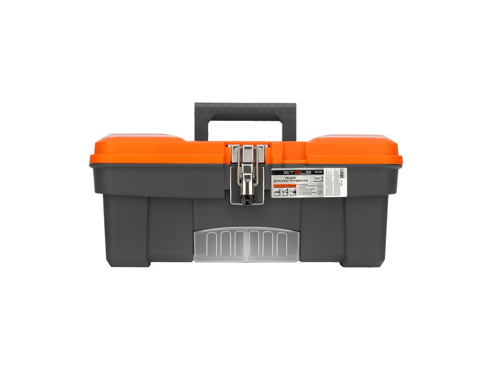 Ящик для инструмента Stels 90746 размером 16 (410 х 210 х 175 мм), с металлическими замками, — альтернатива коробке для инструментов. В нем можно расположить ручной инструмент, крепеж, хозяйственные мелочи, а также рыболовные снасти. В крышке имеются встроенные органайзеры, внутри ящика — выкидной лоток с отсеками для мелких деталей, что увеличивает функциональность изделия. Ящик удобно брать в поездки, также он пригодится дома, на даче или в гараже.