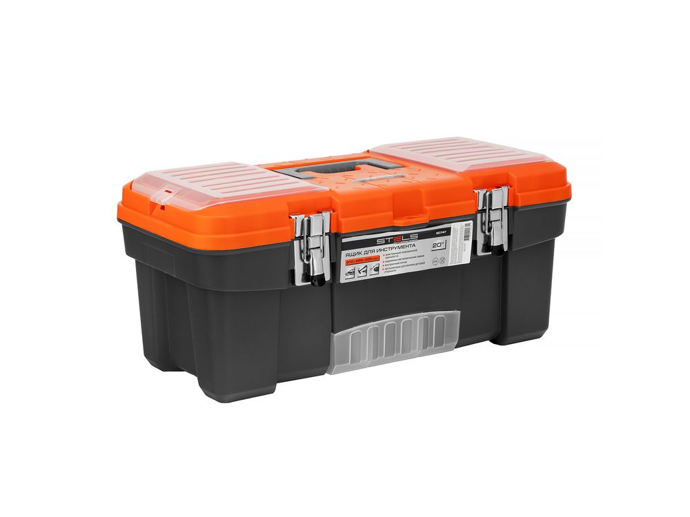 Ящик для инструмента Stels 90747 размером 20 (510 х 255 х 225 мм), с металлическими замками, — альтернатива коробке для инструментов. В нем можно расположить ручной инструмент, крепеж, хозяйственные мелочи, а также рыболовные снасти. В крышке имеются встроенные органайзеры, внутри ящика — выкидной лоток с отсеками для мелких деталей, что увеличивает функциональность изделия. Ящик удобно брать в поездки, также он пригодится дома, на даче или в гараже.