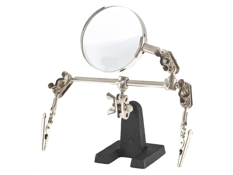 Фиксация предметов под различными углами — благодаря шарнирным креплениям зажимы и лупу можно установить в любом удобном положении.