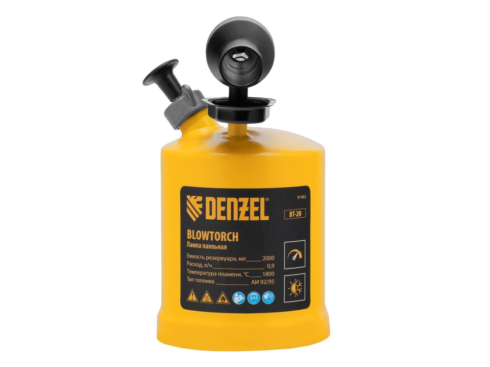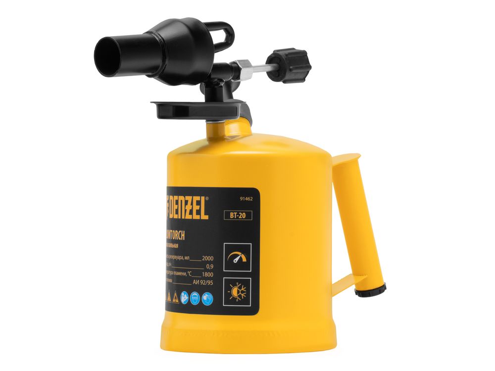 Паяльная лампа Denzel BT-20 91462 с баком объемом 2 л предназначена для нагрева поверхностей при помощи открытого направленного пламени. Полной заправки (1,5 л топлива) хватает больше чем на час работы при расходе 0,9 л/ч. Воздушный насос и форсунка высокого давления обеспечивают эффективную подачу топлива к эжектору. Лампа стабильно работает даже в ветреную погоду. Используется при выполнении ремонтных и демонтажных работ: пайки, сварки, ослаблении заклинивших резьбовых соединений, опаливании древесины, снятии лакокрасочных покрытий и других термических работ. Пригодится для обогрева двигателя. Также будет полезна в сельском хозяйстве и в быту.