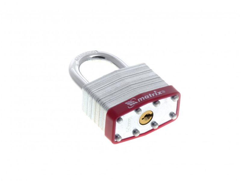 Навесной замок Matrix 91807 шириной 50 мм служит для обеспечения безопасности помещения и ценных вещей. Его можно повесить на ящик, дверь гаража, подсобки, склада, сарая, шкафчика и т.д. Дужку диаметром 9 мм сложно сбить или перекусить.