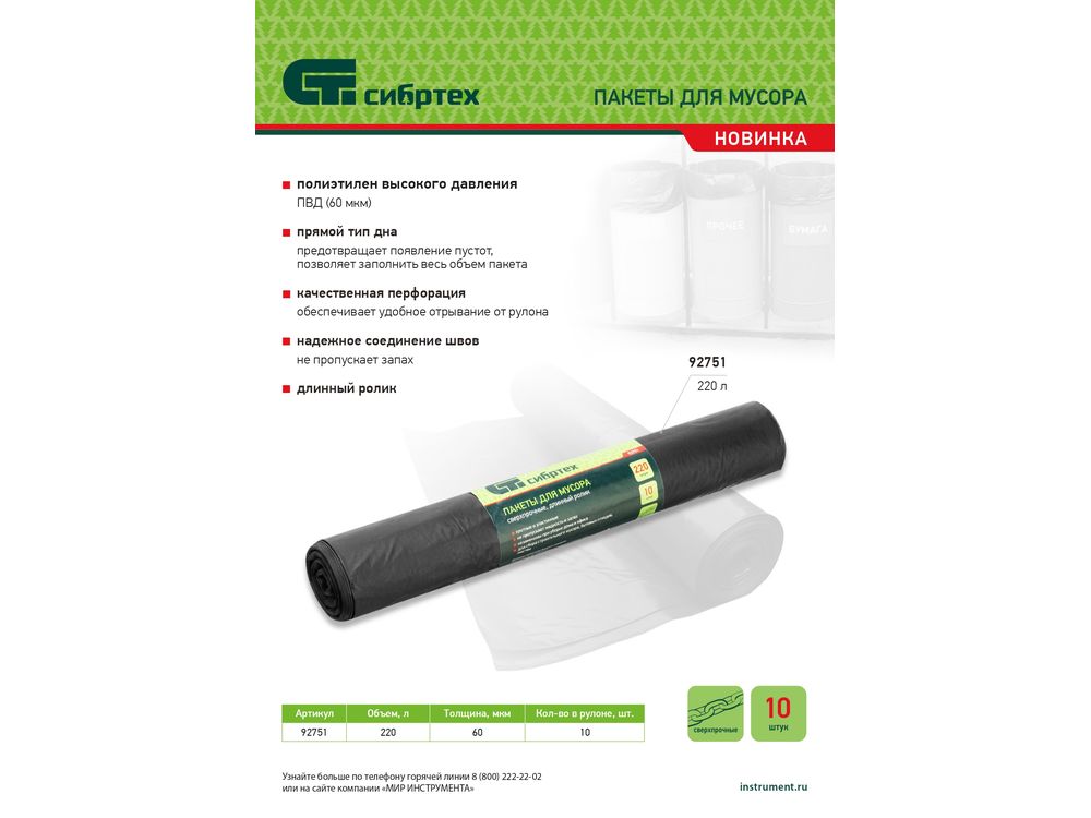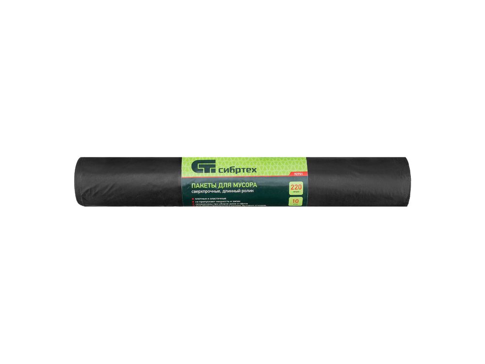Пакеты для мусора 220л*10шт пвд, сверхпрочные, 60 мкм, длинный ролик,